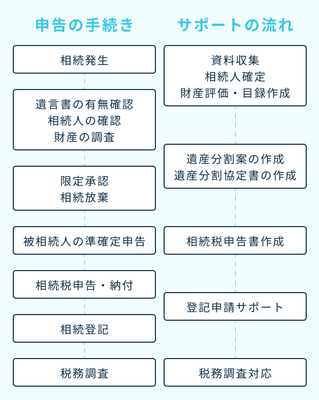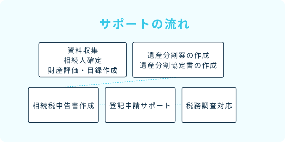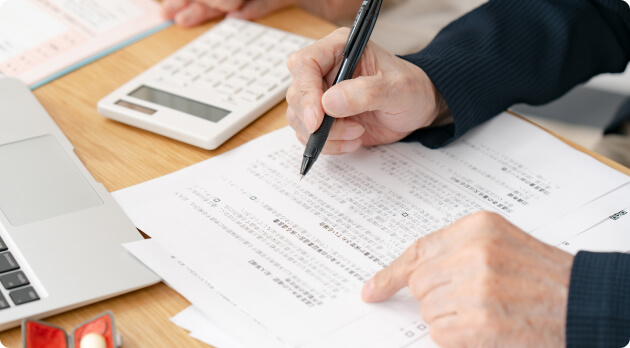 税理士との面談(※内容によっては弁護士との面談)を実施。スケジュール、資金対策、書類等の確認と具体的なアドバイスを行います
